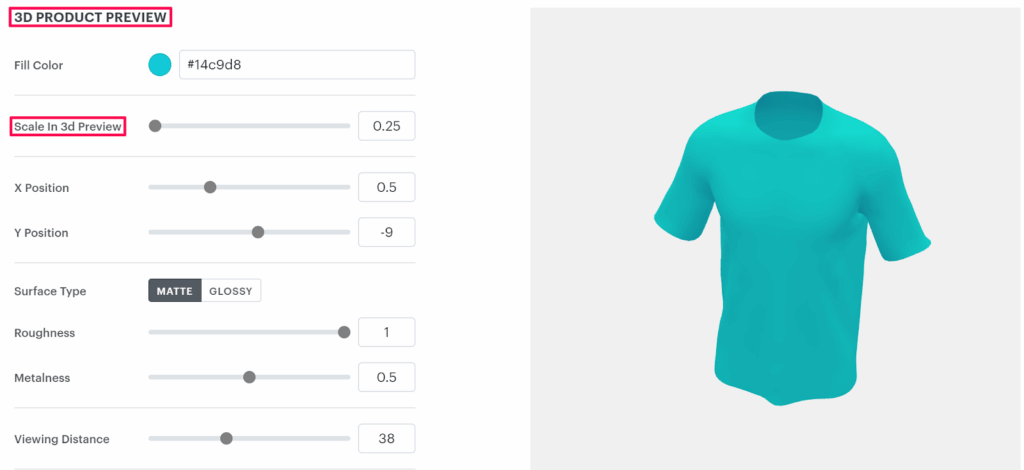 To give the 3D model a realistic view to your customer, you can configure the settings below