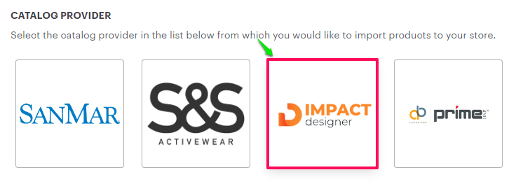 5. A new page will open. The list of Impact Designer products will show below. Click on the product image that you would like to import.