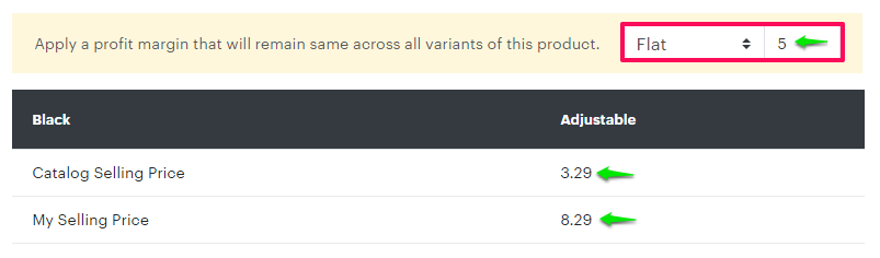 - Flat: This option adds a flat price for profit margin across all variants of the product.