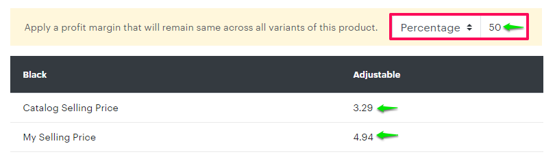 - Percentage: You can set the profit margin as a percentage, which will be added across all variants of the product.