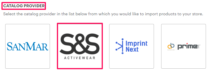 4. The Catalog Provider list will appear. Select “S&S Activewear.”