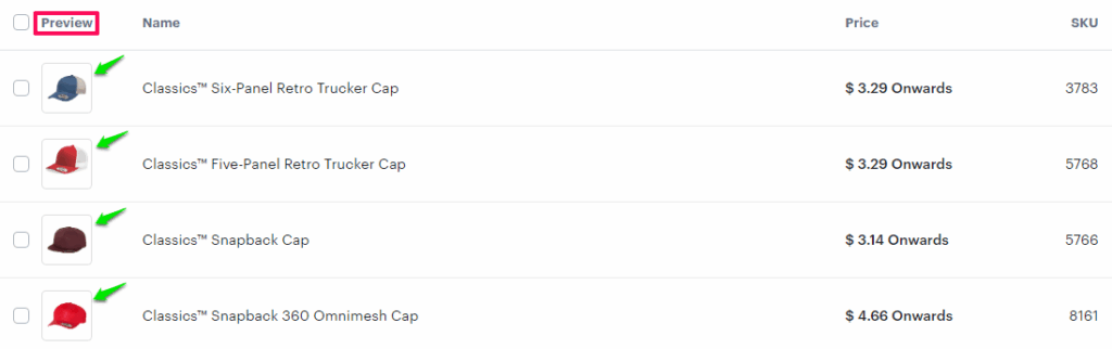 5. A new page will open. The list of S&S Activewear’s products will show below. Click on the product image that you would like to import.