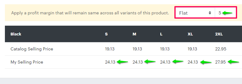 - Flat: This option adds a flat price for profit margin across all variants of the product.