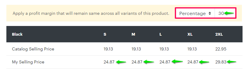 - Percentage: You can set the profit margin as a percentage, which will be added across all variants of the product.