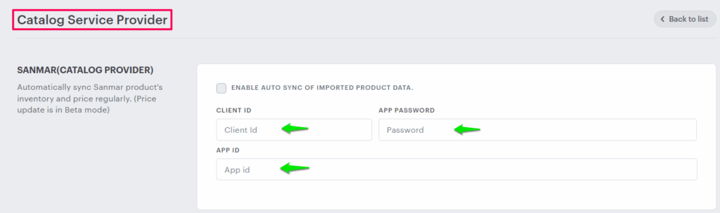 Merchants must input their SanMar credentials, which Impact Designer uses to make API calls to SanMar on behalf of the merchant. These calls update inventory and price details for the respective imported products.