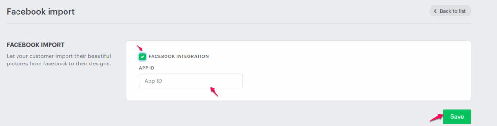 Step 3: Mark the FACEBOOK INTEGRATION check box, enter the APP ID, and click on the Save button.