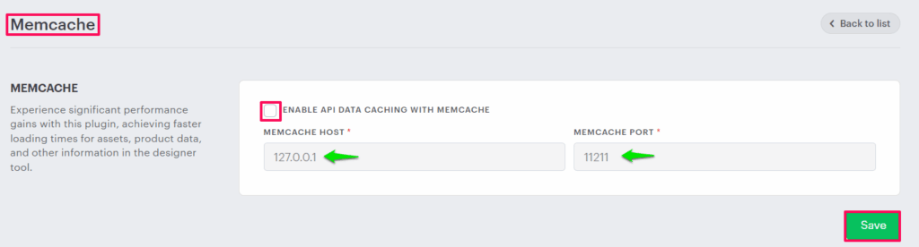 You can enable or disable the settings by clicking “Enable API Data Caching with Memcache.”