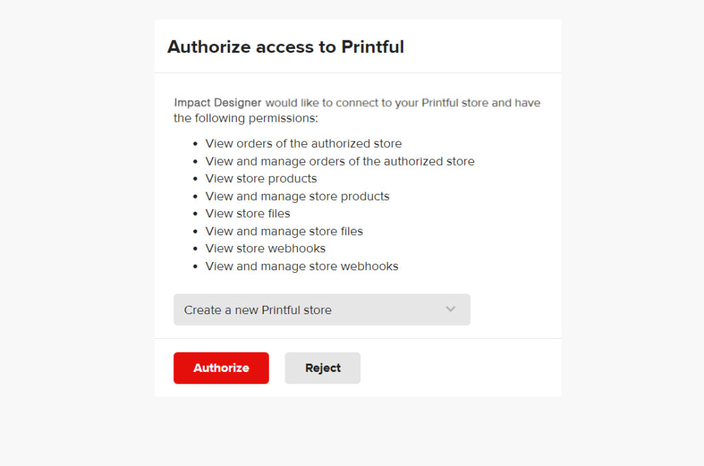 Step 3: After clicking “Install”, it will redirect you to a page where you must grant authorized access to Impact Designer to connect or link your Printful account.