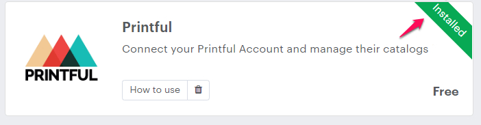 Step 4: Check whether Printful is installed. Go to Home > Settings > Integration, and on the Printful icon, an Installed tag will be shown.