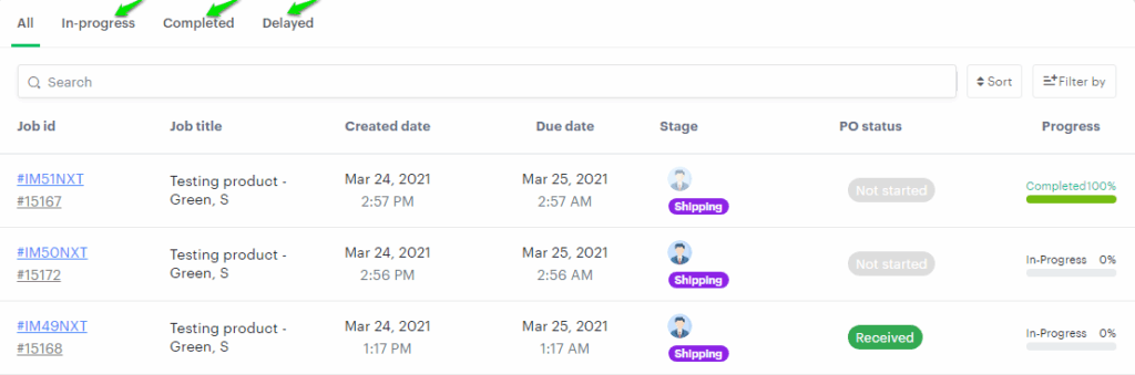 (ii) List View: In this section, we can view the production job cards based on the progress status.