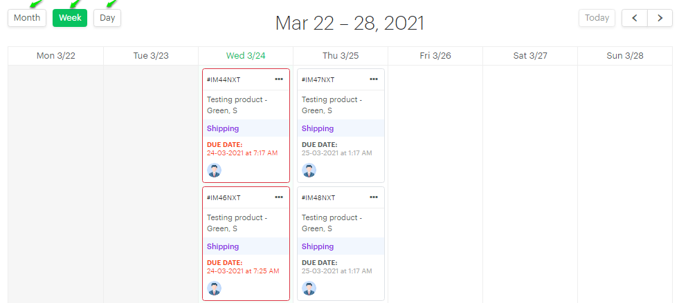 (iv) Calendar view: In this section, we can view the production job cards based on the days, weeks, and months.