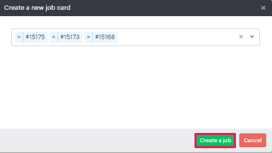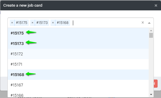 4. A pop-up will open. From the drop-down, select the order ID for which the job card will be created. You can select multiple order IDs also.