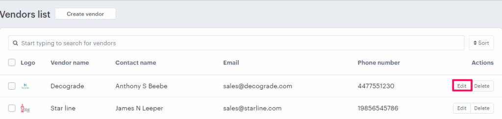 4. Select a vendor and click on “Edit.”
