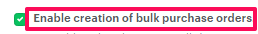 4. The purchase order settings page will appear. Click on the “Enable creation of bulk purchase orders”