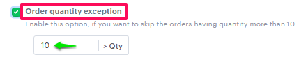 6. If you want to skip orders above a specific quantity, then you can set it in the text field below the order quantity exception checkbox.