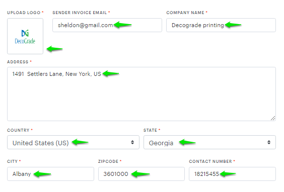 4. The Quotation Settings page will appear. Scroll down to the Invoice section. Add your company details such as Company Logo, Email Address, Name, Address, etc.