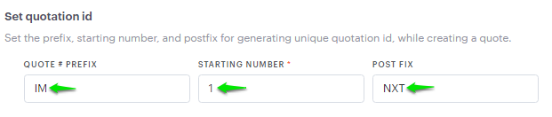 4. The Quotation Settings page will appear. Here, you need to set the quotation ID format, including Quote Prefix, Starting Number, and Postfix.