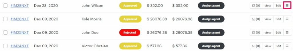 3. Tap on Quotation. The list of quotations will appear below. Select your desired quotation, and under the Action column, click the Three-Line Menu button.