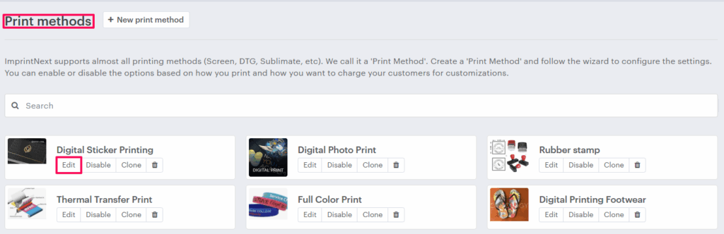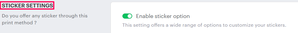 4. The Print Method Settings page will appear. Scroll down to find Sticker Settings.