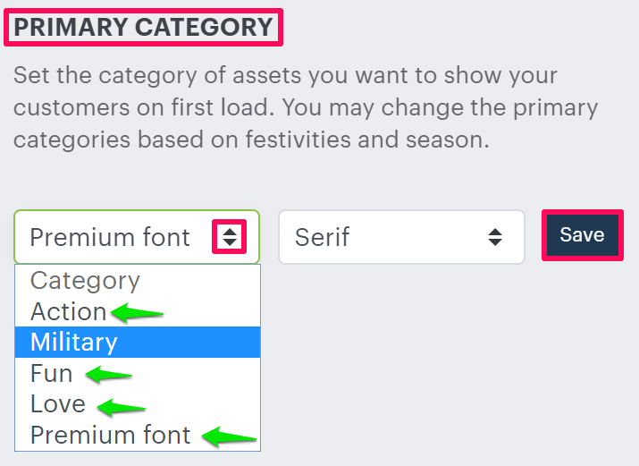 5. A new Manage Category page will appear. In the Primary Category section, click the category dropdown and select your desired category.