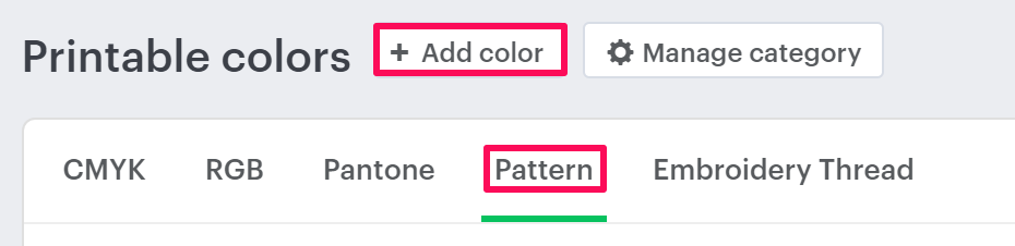4. On the Printable Colors page, select the tab Pattern and click “Add Color.”