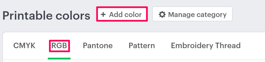 4. On the Printable Colors page, select the tab RGB and click “Add Color.”