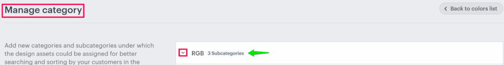 5. In the Manage Category section, choose the categories that have subcategories in them and click the expand option of the category.