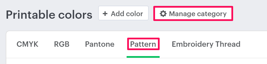 4. On the Printable Colors page, select the tab Pattern and click “Manage Category.”