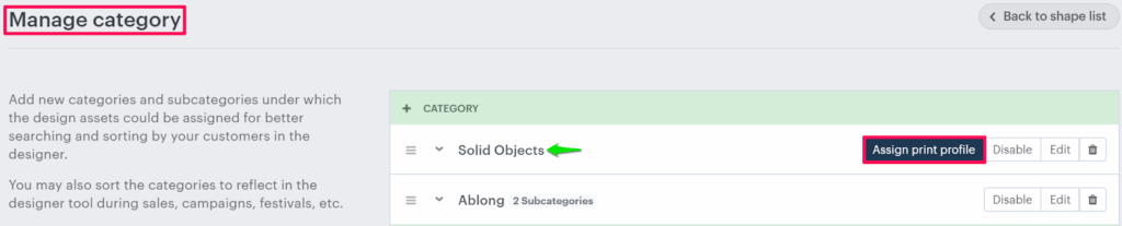 5. Under the Manage Category section, choose any category and click “Assign Print Profile.”