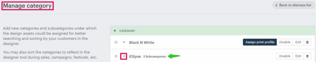 ► Subcategory should be added to the respective category before assigning it to the print profile.