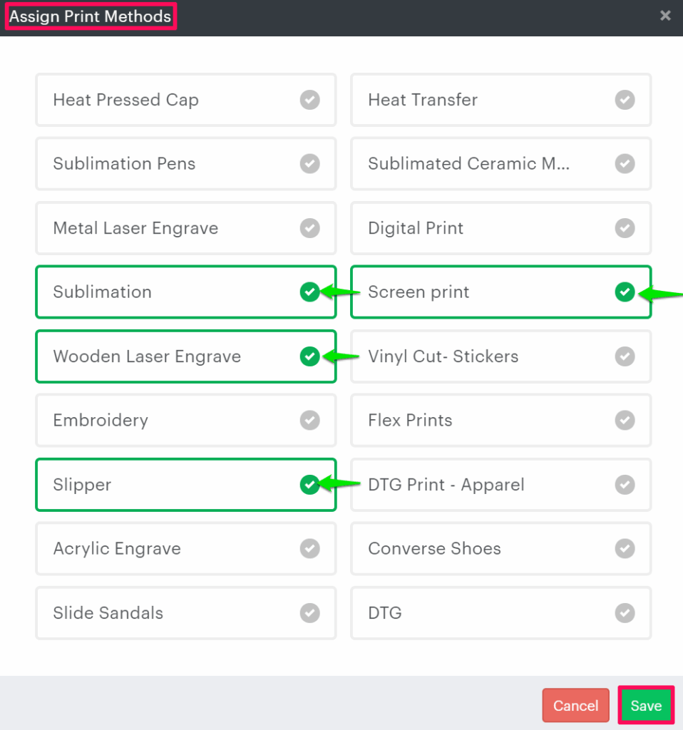 7. A pop-up named Assign Print Methods will open. Select the desired print profile you want to assign.