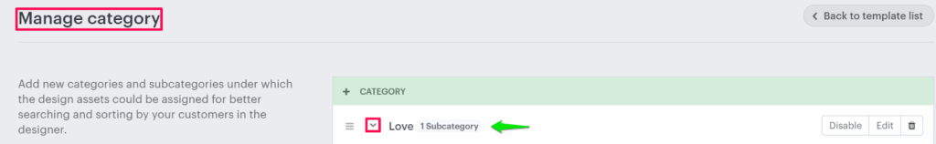 5. Under the Manage Category section, choose the categories that have subcategories and click the expand option of the category.