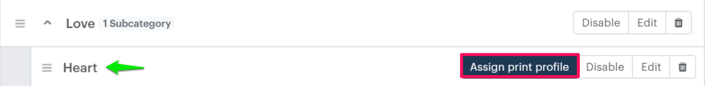 ► The subcategory should be added to the respective category before assigning it to the print profile.