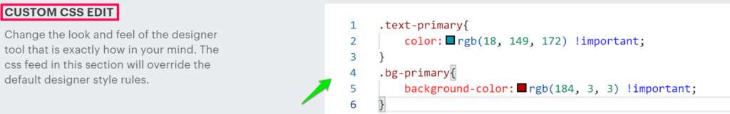4. Scroll down to find Custom CSS Edit. Enter custom CSS in the text editor.