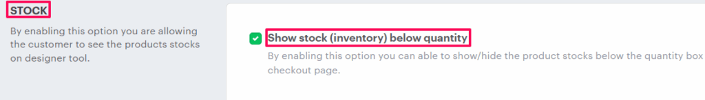 ► Enabling this option will show the stock quantity of the product for each variation in the designer studio.