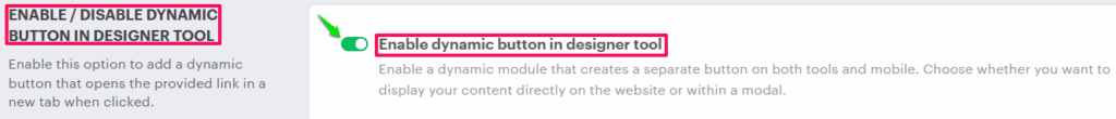 4. Scroll down to find Enable/Disable Dynamic Button in Designer Tool and enable the toggle for Enable Dynamic Button in Designer Tool.