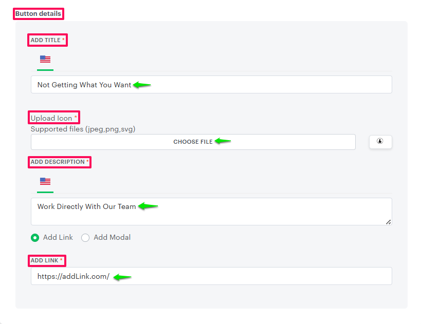5. A form will open below where you need to Add Title, Upload Icon, Add Description, and Add Link.
