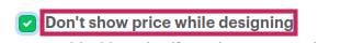 4. In the Advance Settings section, enable the checkbox of Don’t show price while designing.