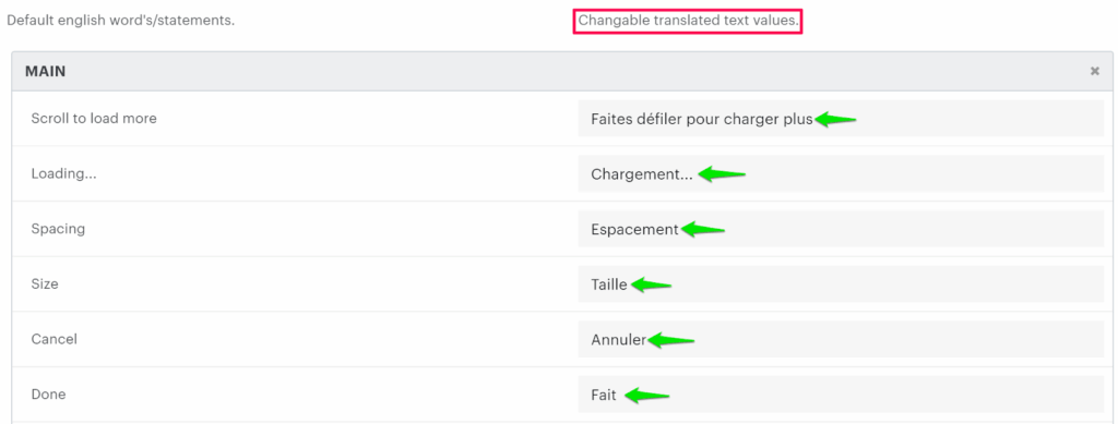 7. Click each module (like Main, Panel, Modules, etc.) and change your translated language in the column Changeable Translated Text Values.