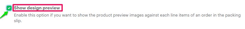 6. Enable the checkbox of Show Design Preview Label to display the product preview images in the packaging slip.