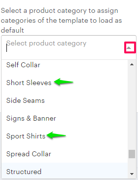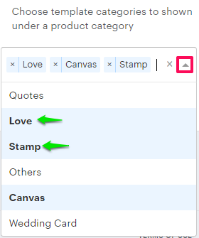 6. Select the dropdown on the right to choose the template categories associated with those products.