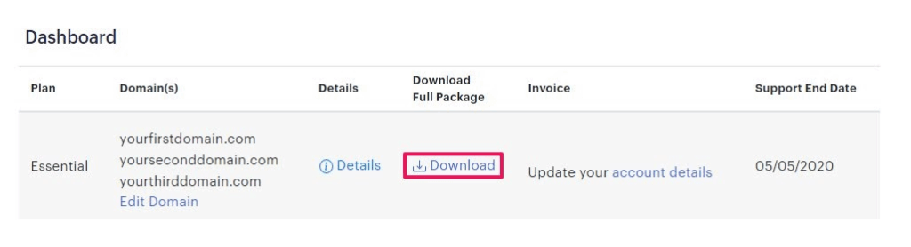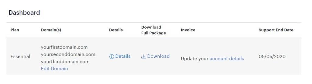 • Once logged in, your Dashboard will open. Here you can view your registered domains and subscription details.