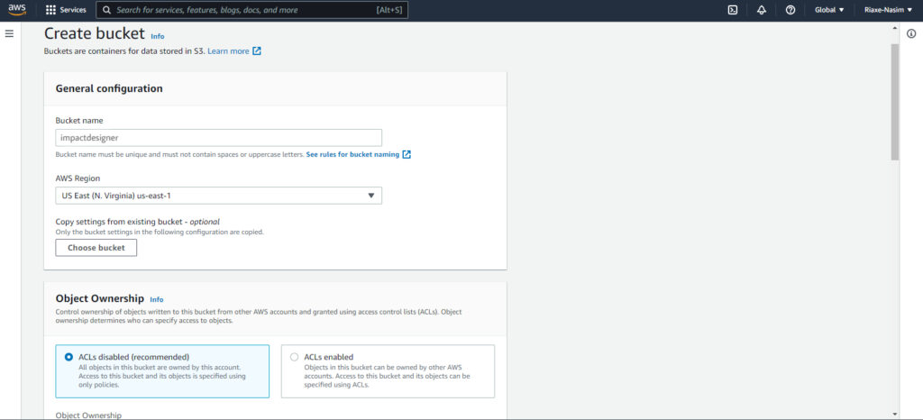 3. In “Bucket name”, enter a DNS-compliant name for your bucket.