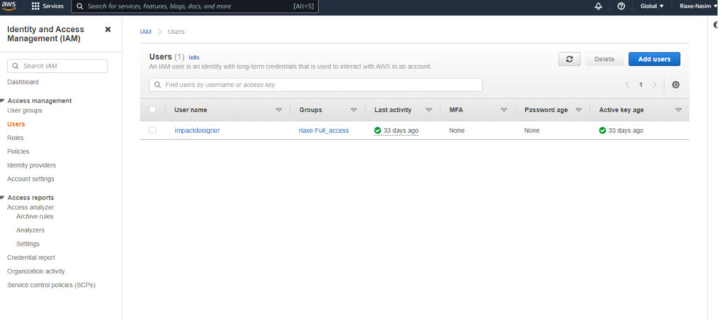 - From the home dashboard, choose Identity & Access Management. (IAM): https://console.aws.amazon.com/iamv2/home#/users