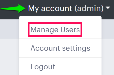 2. Move to the right on the navigation panel, find My account, and select it. A dropdown will open, and click “Manage Users.”