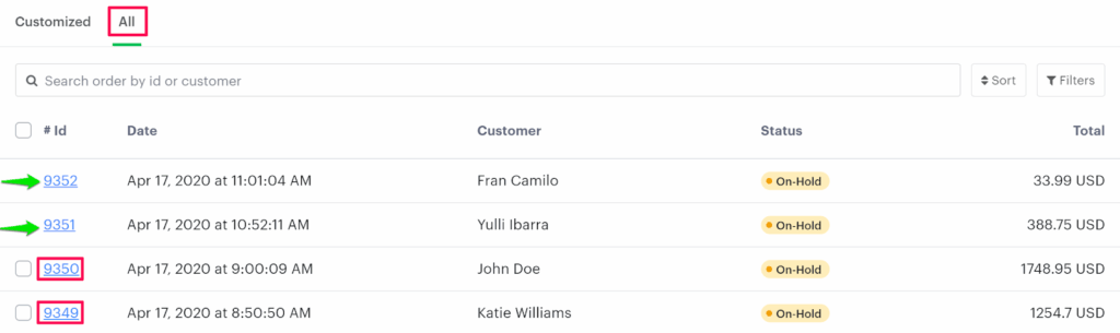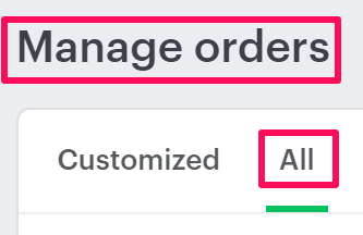 5. The order list will appear below. This list contains the orders that are customized through the designer tool as well as the orders that are directly purchased, i.e., without customization.