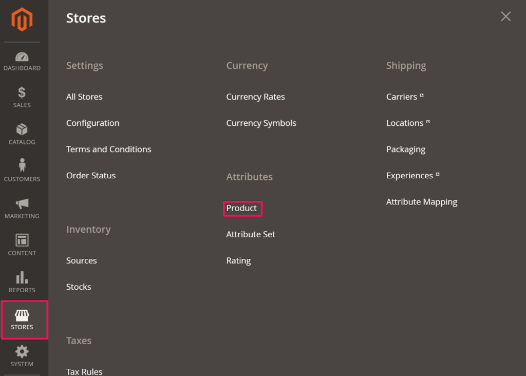 2. From the left toolbar, click “Store”. A navigation panel will open to the right, and select “Product.”