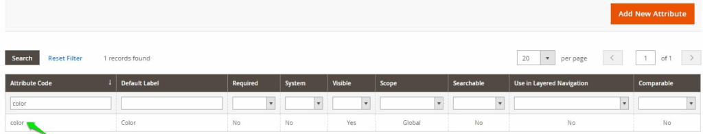 3. In the new page, under Attribute Code, search for Color and click “Color.”