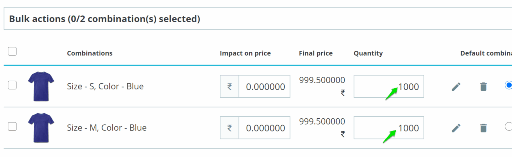 5. The variations will be created for the product. Set the quantity for each variation.