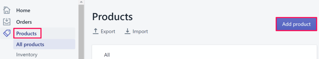 2. Go to Products and select “Add Product.”